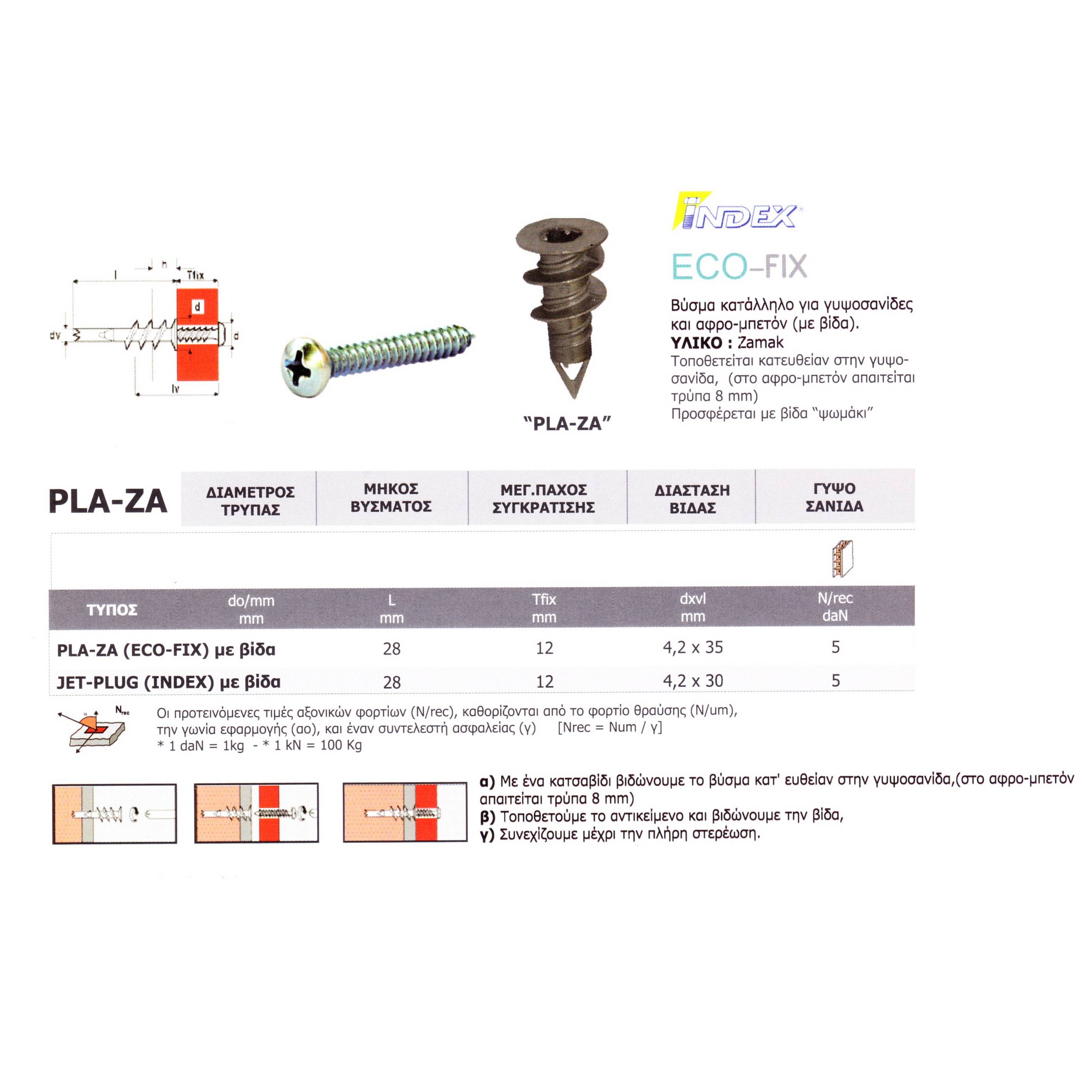 Τοποθετείται κατευθείαν στη γυψοσανίδα, (στο αφρο-μπετόν απαιτείται τρύπα 8 mm).
