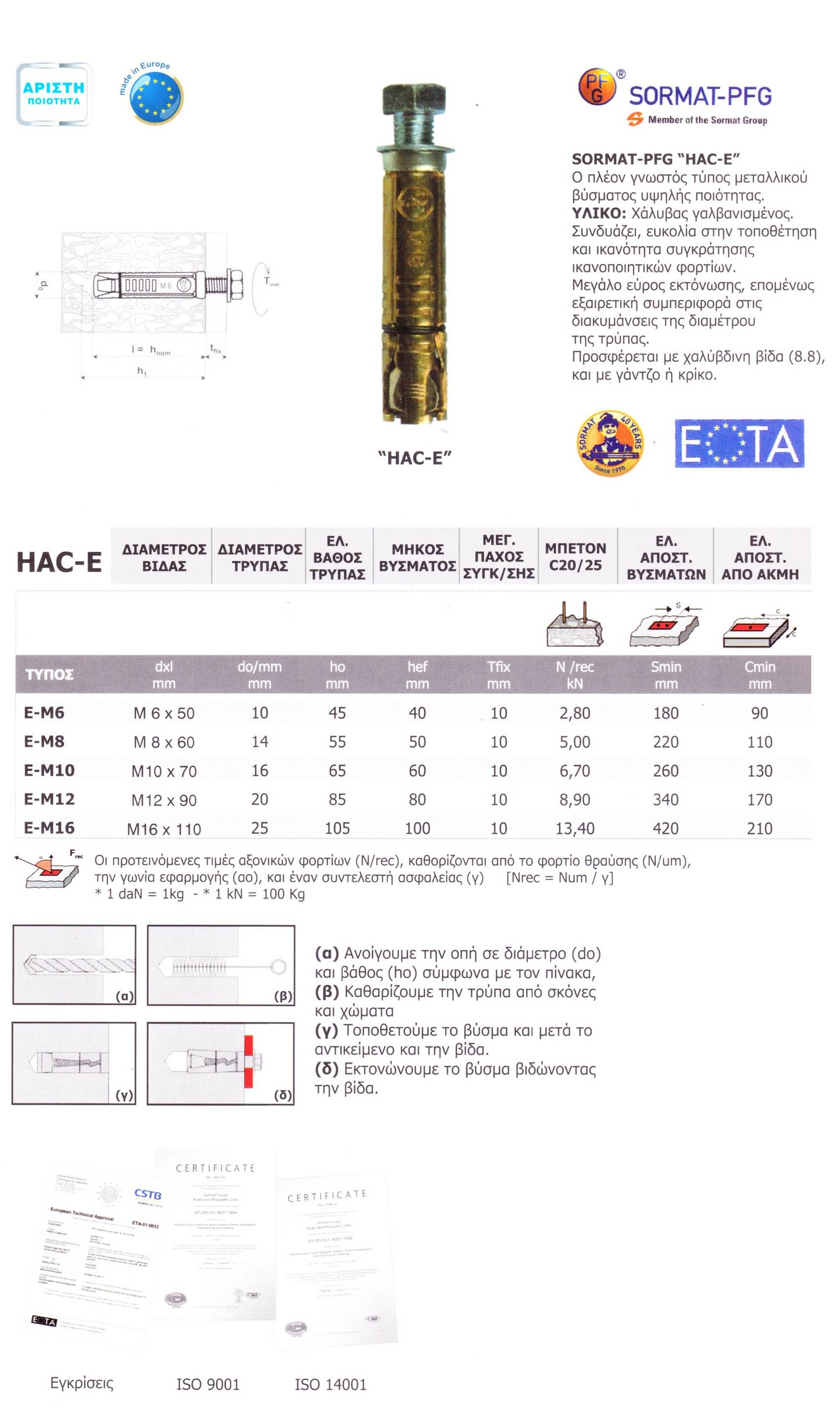 Εκτονούμενα βύσματα πακτώσεως με κωνικό παξιμάδι.