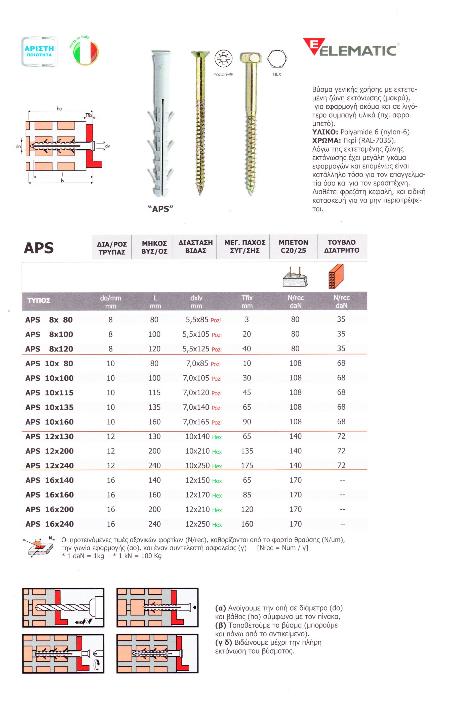 Βύσμα γενικής χρήσης με εκτεταμένη ζώνη εκτόνωσης (μακρύ), για εφαρμογή ακόμα και σε λιγότερο συμπαγή υλικά (πχ. Αφρο-μπετό)