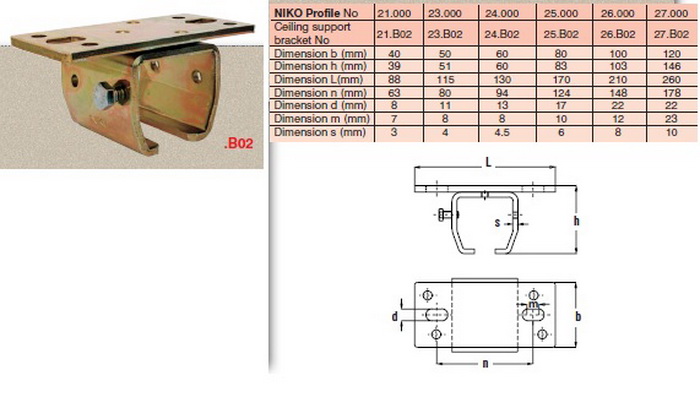 Αυτό το στήριγμα χρησιμοποιείται για ανάρτηση της ράγας κατ’ ευθείαν από οροφή ή από άλλη κατασκευή με βίδες συνδέσεως.