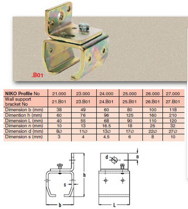 Αυτό το στήριγμα χρησιμοποιείται για ανάρτηση της ράγας κατ’ ευθείαν από τοίχο ή από άλλη κατασκευή με βίδες συνδέσεως.