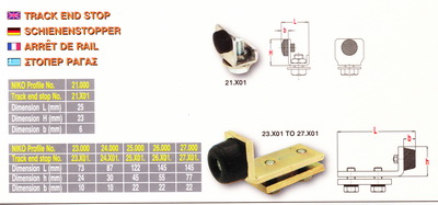 Το ακραίο στόπερ με ενσωματωμένο ελαστικό προσκέφαλο στερεώνεται στο ελεύθερο άκρο των προφίλ ράγας και της εγκάρσιας ενισχυμένης ράγας.